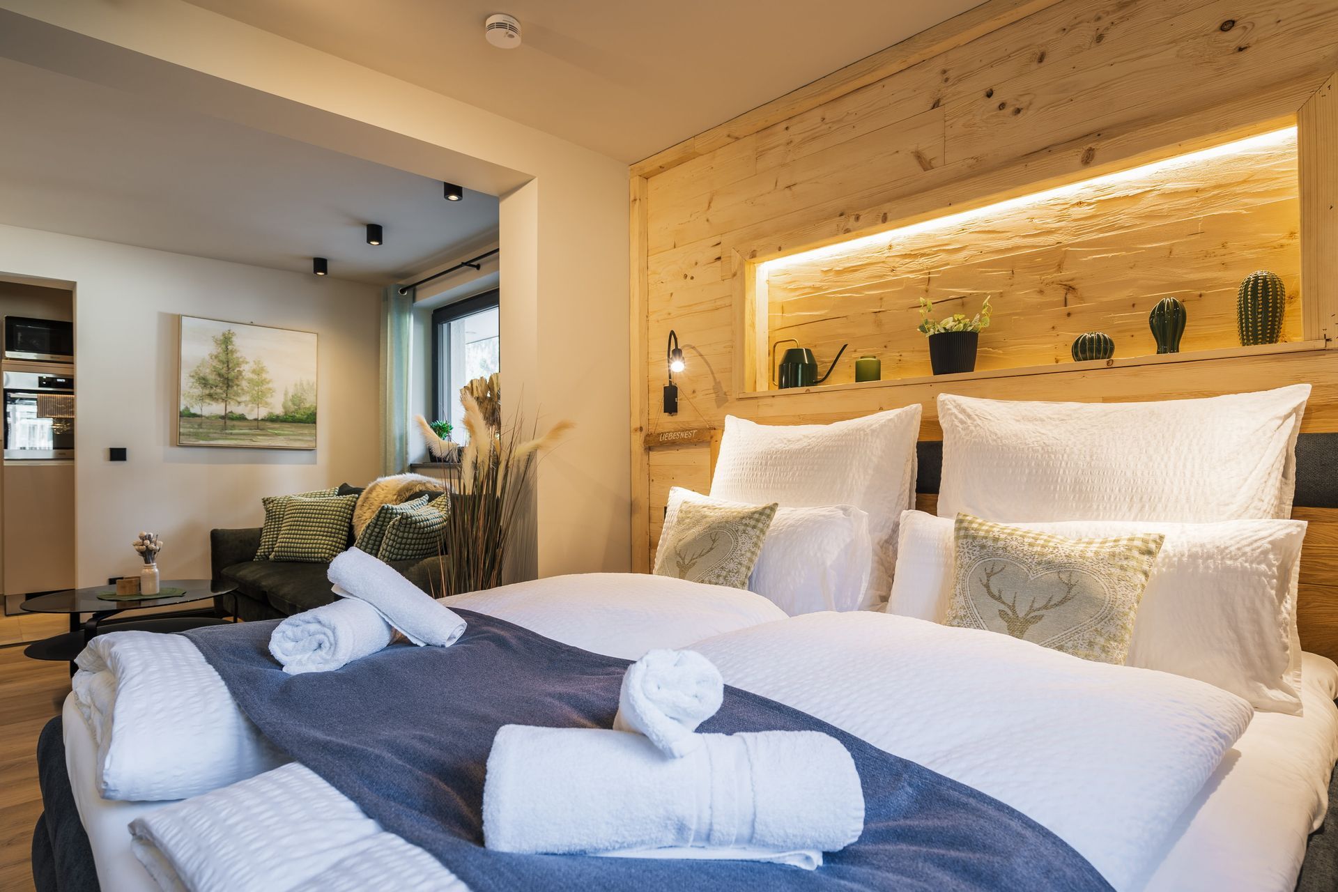 Bei uns erwarten euch liebevoll gestaltete Unterkünfte, die modernes Design mit alpinem Charme verbinden. Orte zum Ankommen & Batterien aufladen!